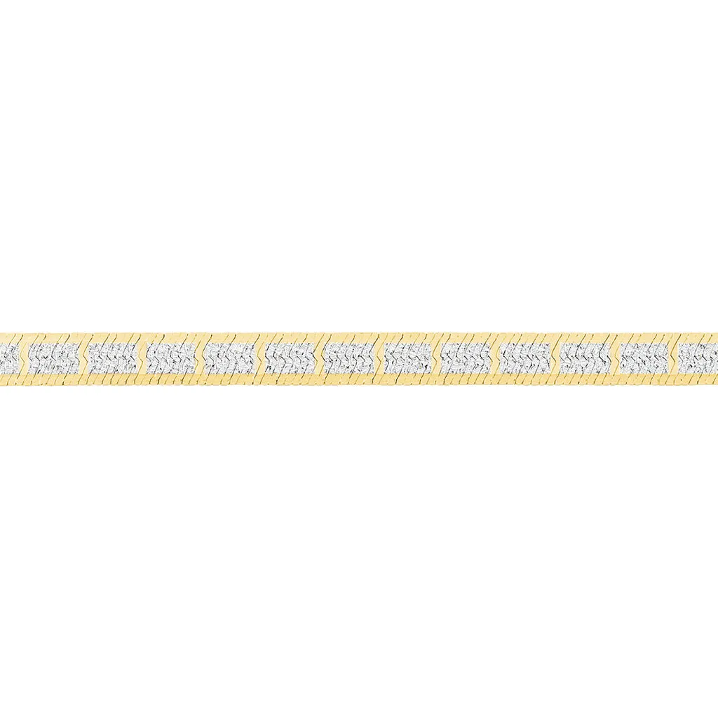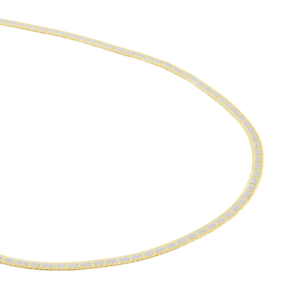 Collier Argent Jaune 925/1000 Maille Heringbone Motifs Carres Diamantes Largeur 3mm 42cm