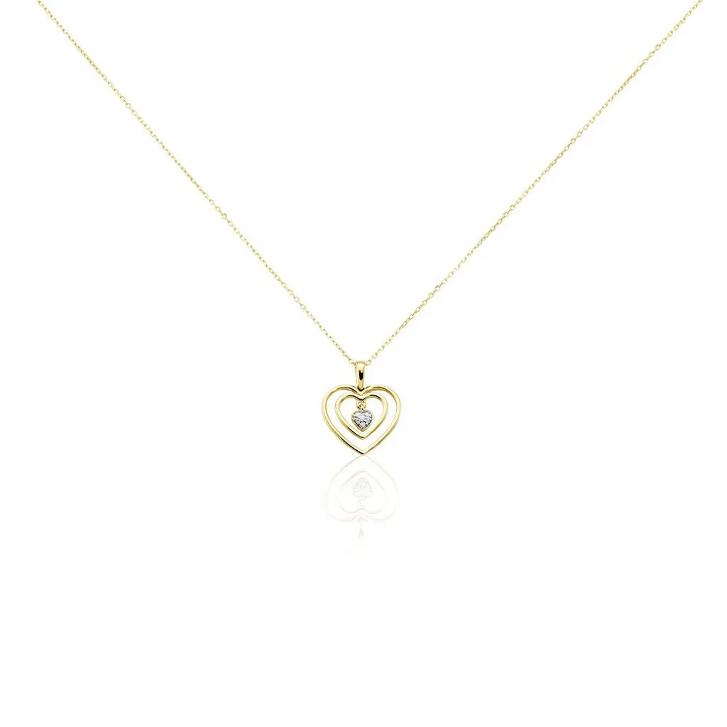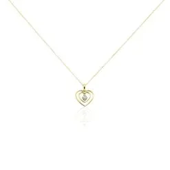 Collier Or Jaune 375/1000 Forme Coeur Diamants 40+2cm