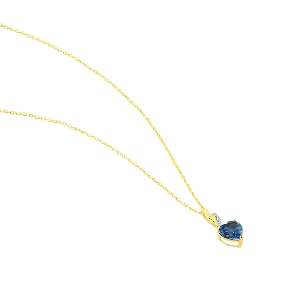 Collier Or Jaune 375/1000 Topaze London Blue Cœur 1.1 Cts Serti Griffes Maille Forçat 40+2 Cm