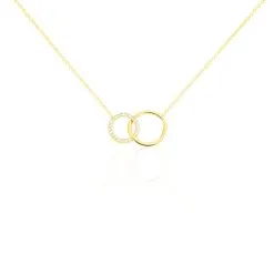 Collier Or Jaune 375/1000 Double Cercles Pavage Oxydes De Zirconium 42cm