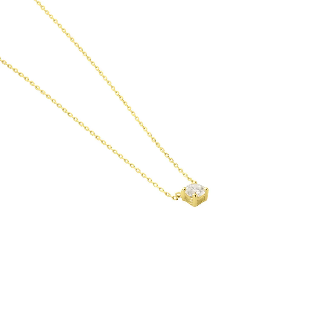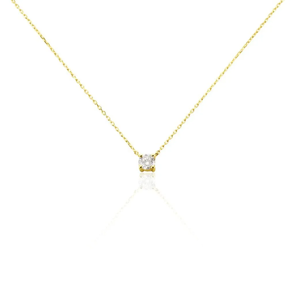 Collier Or Jaune 375/1000 Solitaire Diamant 0.25cts Serti 4 Griffes Maille Forçat 40+2cm