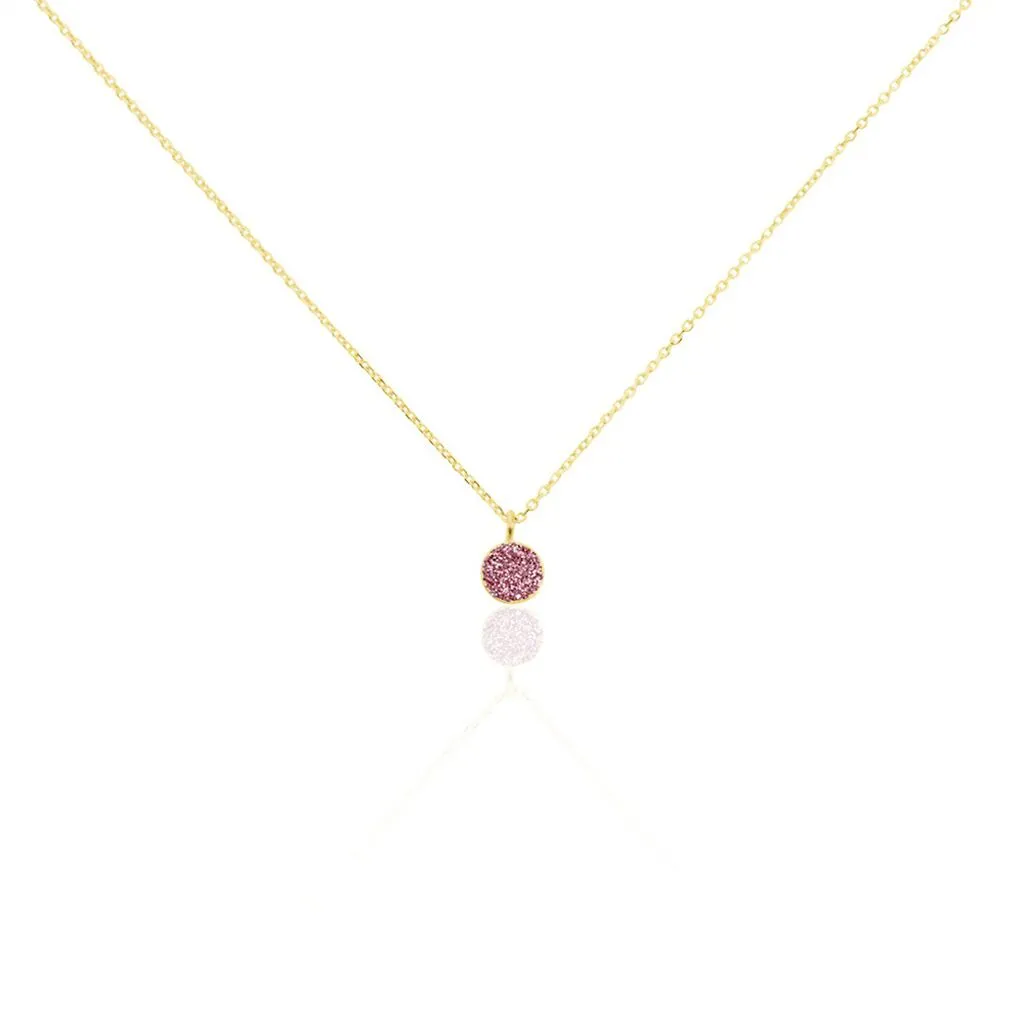 Collier Or Jaune 375/1000 Pastille Glitter Violet Maille Forçat 36/38cm