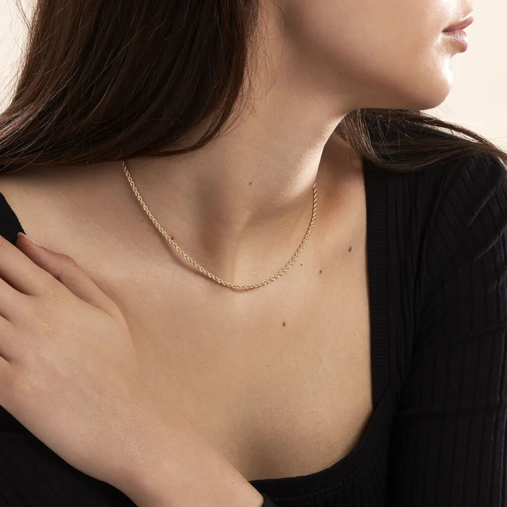 Collier Or Jaune 375/1000 Maille Corde Largeur 2.2mm 42cm