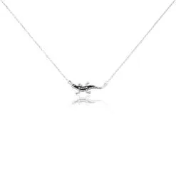 Collier Argent Blanc 925/1000 Lezard Ruthenium Oxydes De Zirconium 45cm