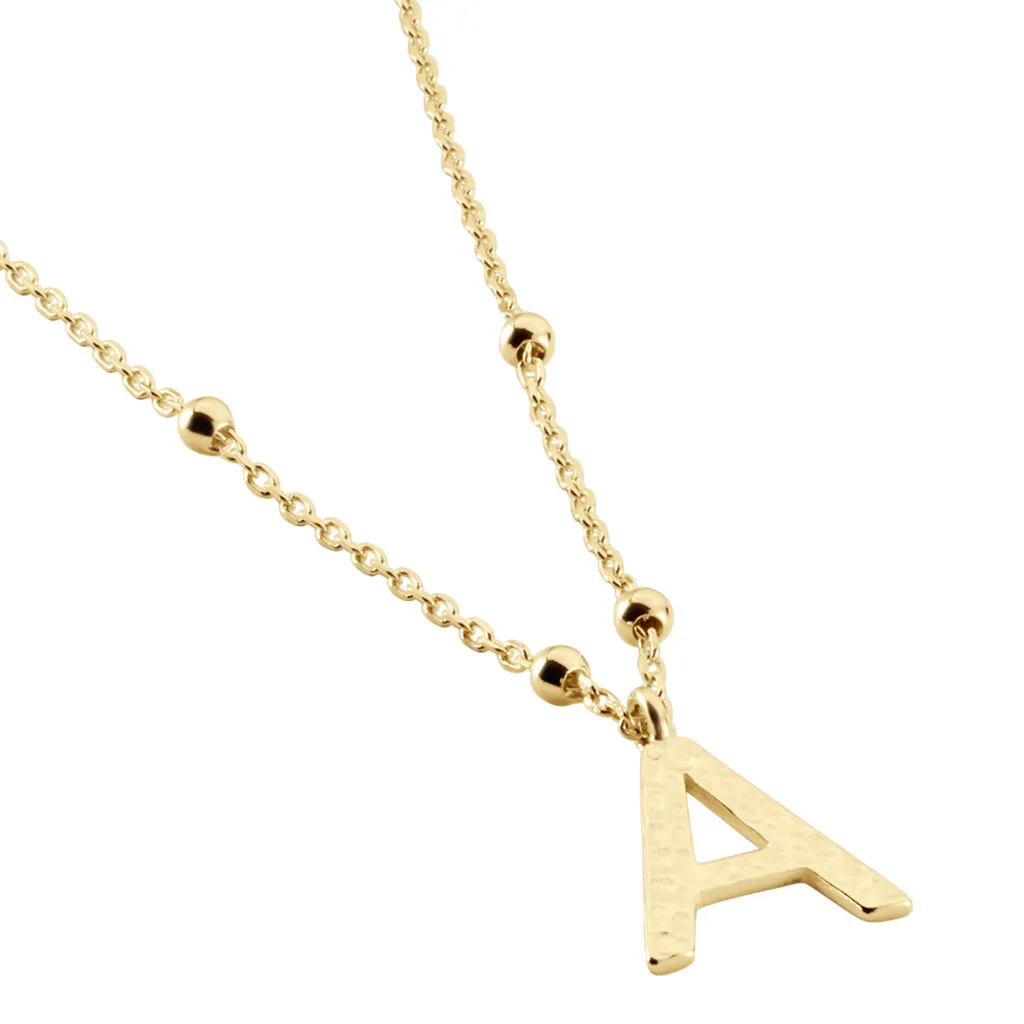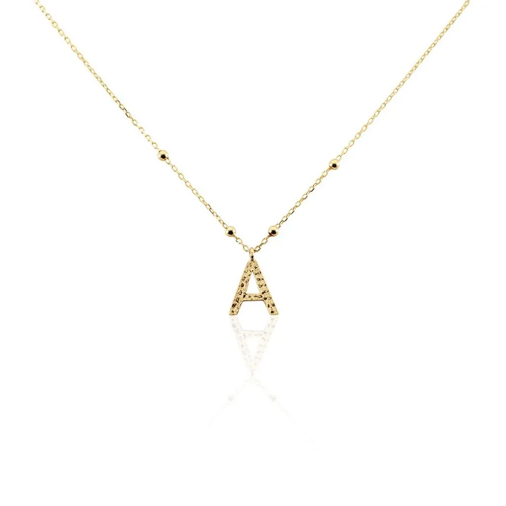 Collier Plaque Or Jaune Lettre A Martelee Et Petites Boules Chaine Maille Forcat Longueur 45cm