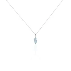 Collier Or Blanc 375/1000 Maille Forçat Pendentif Navette Topaze Bleue Sertie Griffes 45cm