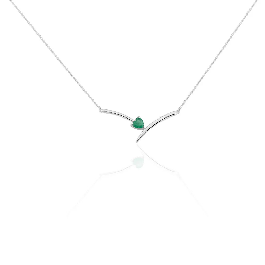 Collier Or Blanc 375/1000 Cœur Emeraude 42cm