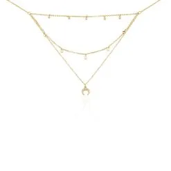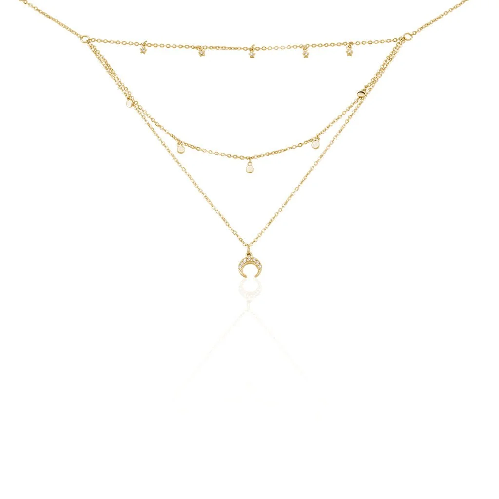 Collier Plaqué Or Jaune Lune Et Pampilles Triple Chaines Oxydes De Zirconium 48cm