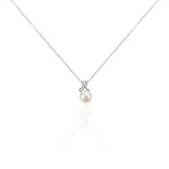 Collier Sathine Argent Blanc Perle De Culture Et Oxyde De Zirconium