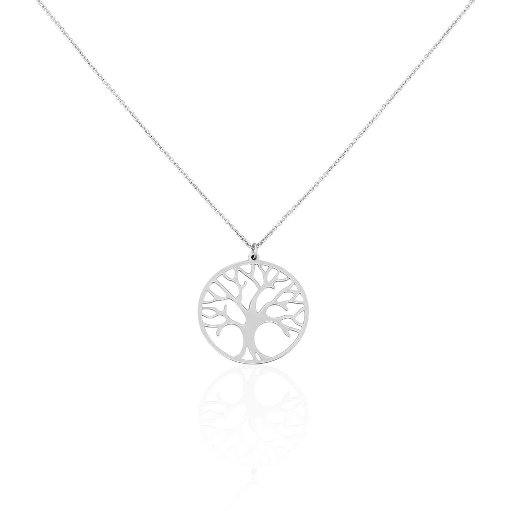 Collier Sautoir Argent Blanc 925/1000 Arbre De Vie Maille Forcat 70cm