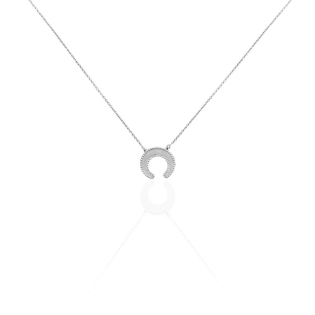 Collier Argent 925/1000 Forme Corne Effet Mate Et Perle 42cm