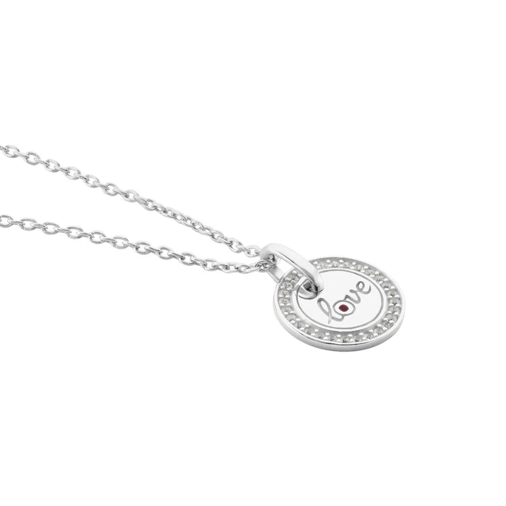 Collier Argent 925/1000 Pastille Gravee Love Maille Forcat Entourage Pavage Oxydes De Zirconium 45cm