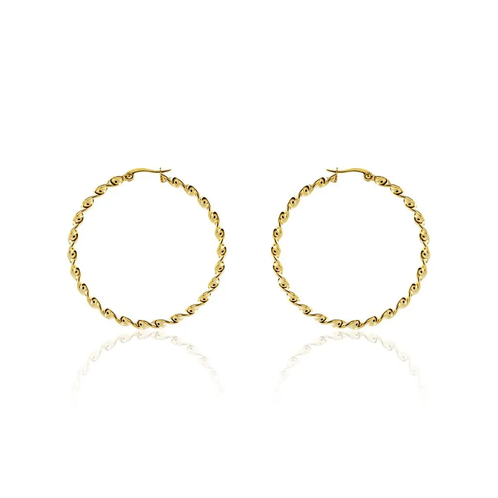 Creoles Acier Dore Torsadees Largeur 3mm Diametre 40mm