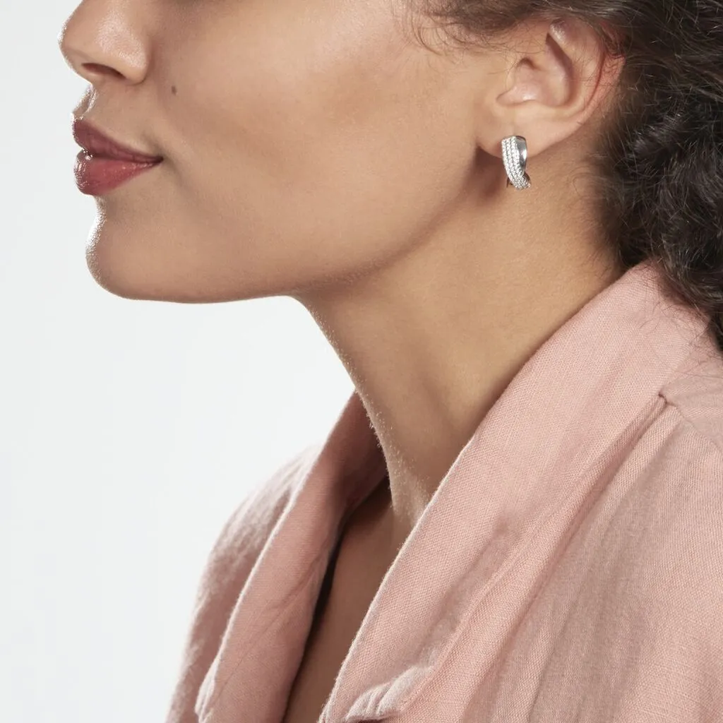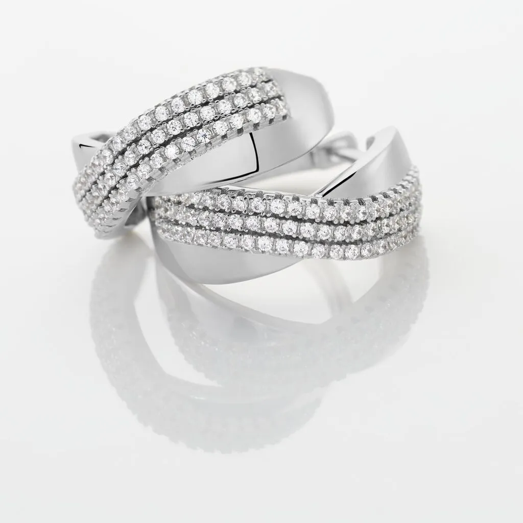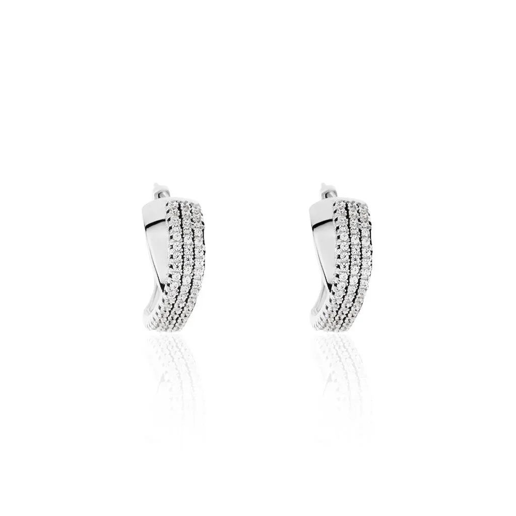 Creoles Argent 925/1000 Vagues Pavages Oxydes De Zirconium