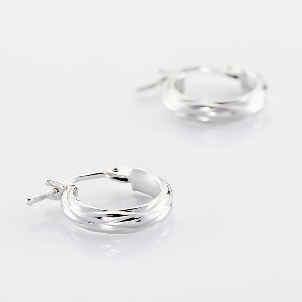 Créoles Or Blanc 375/1000 Fil Demi Jonc Effet Diamanté Largeur 3mm Diamètre 8mm