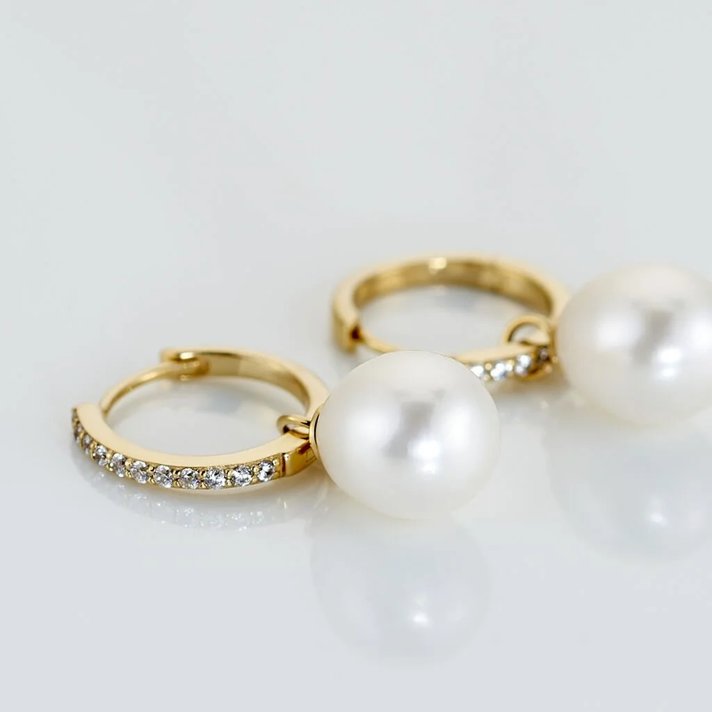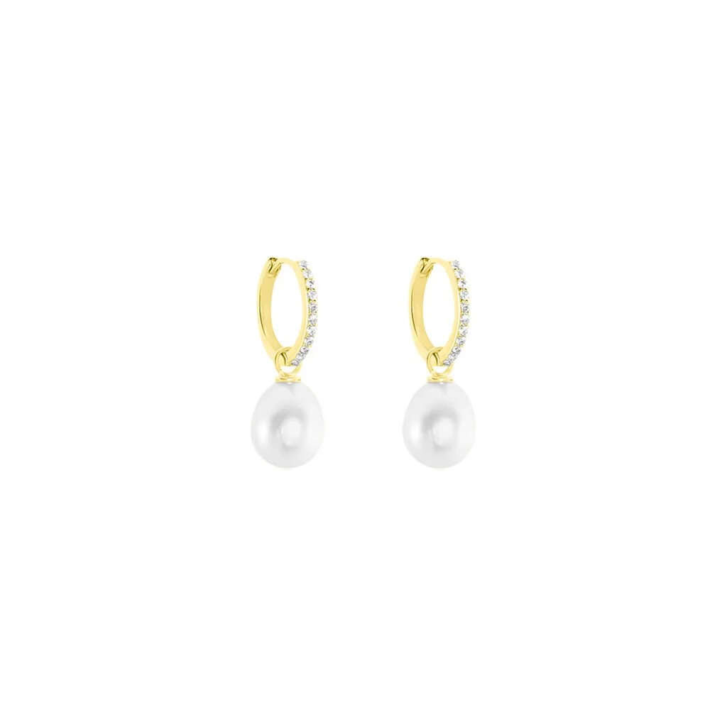 Créoles Anes Poire Or Jaune Perle De Culture Et Oxyde De Zirconium