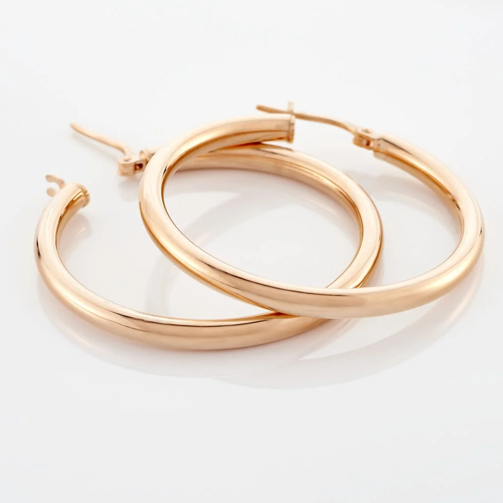 Creoles Argent 925/1000 Rose Ronde Diam 30mm