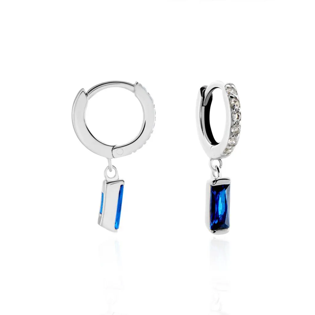 Creoles Argent Blanc 925/1000 Pavage Oxydes Pampilles Rectangles Bleus Serti Griffes Oxydes