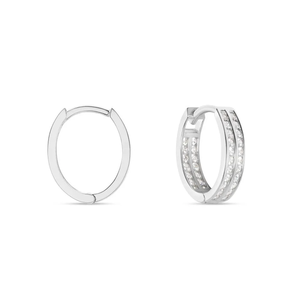 Boucles D’oreilles Creoles Argent Blanc 925/1000 Ovales Double Rang Pavage Oxydes De Zirconium