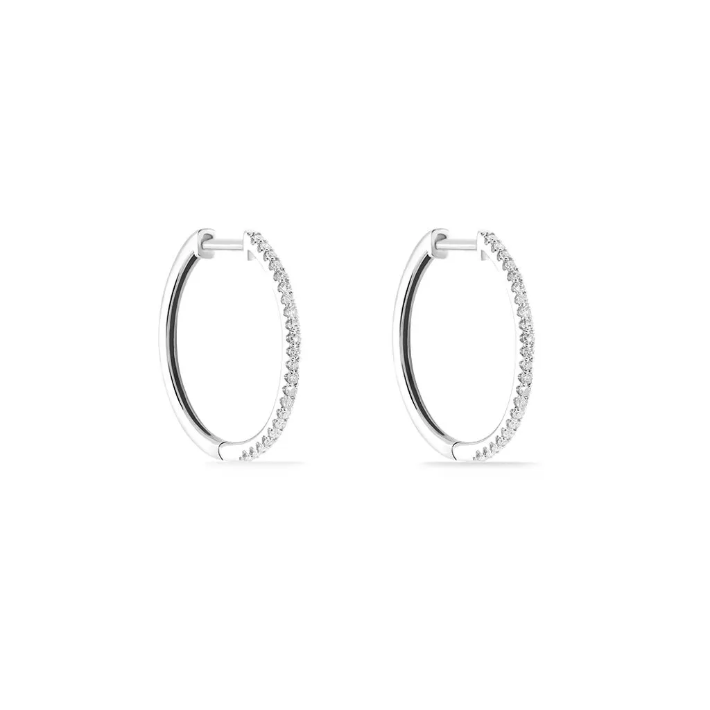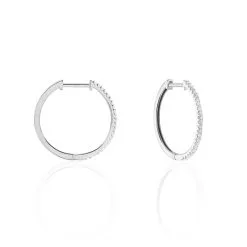Créoles Or Blanc 375/1000 Diamants 0.12ct Diamètre 15mm Largeur 0.95mm