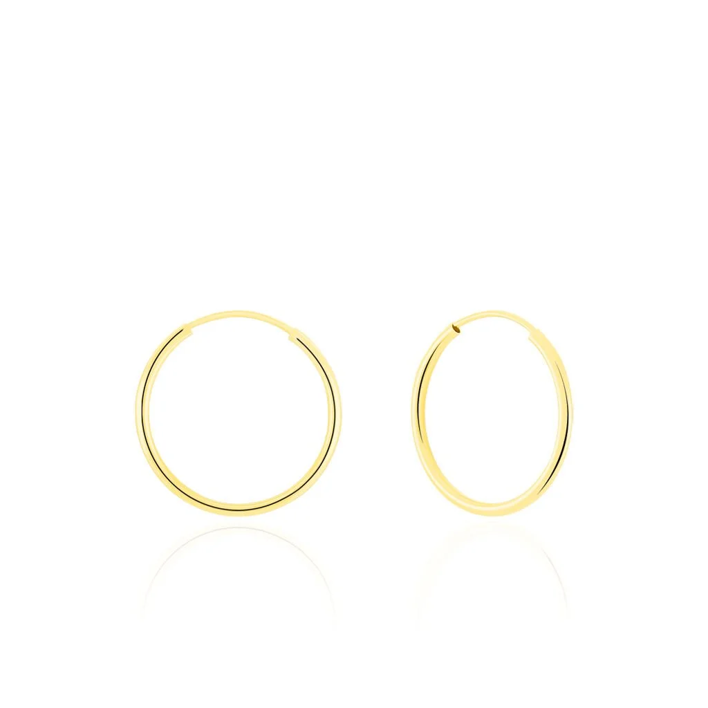 Créoles Or Jaune 375/1000 Fil Flexible Lisse Largeur 1.2mm Diamètre 16mm
