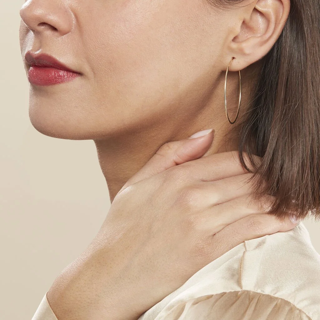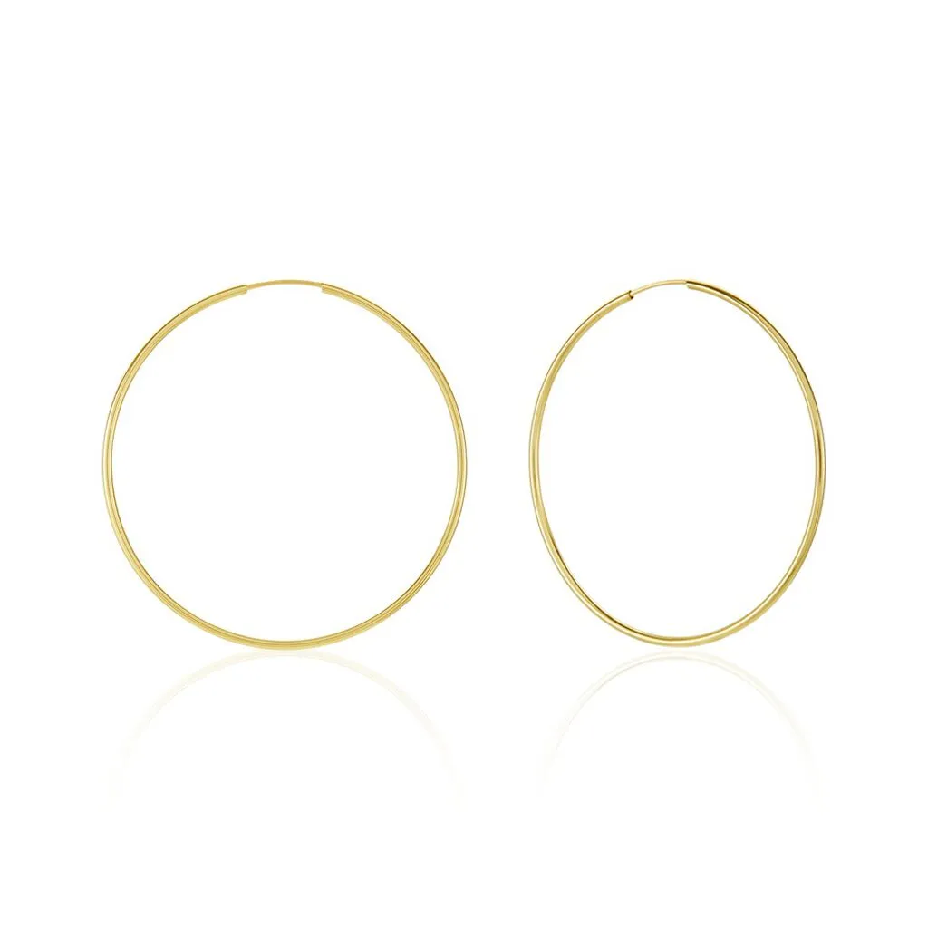 Créoles Or Jaune 375/1000 Fil Flexible Lisse Largeur 1.2mm Diamètre 40mm