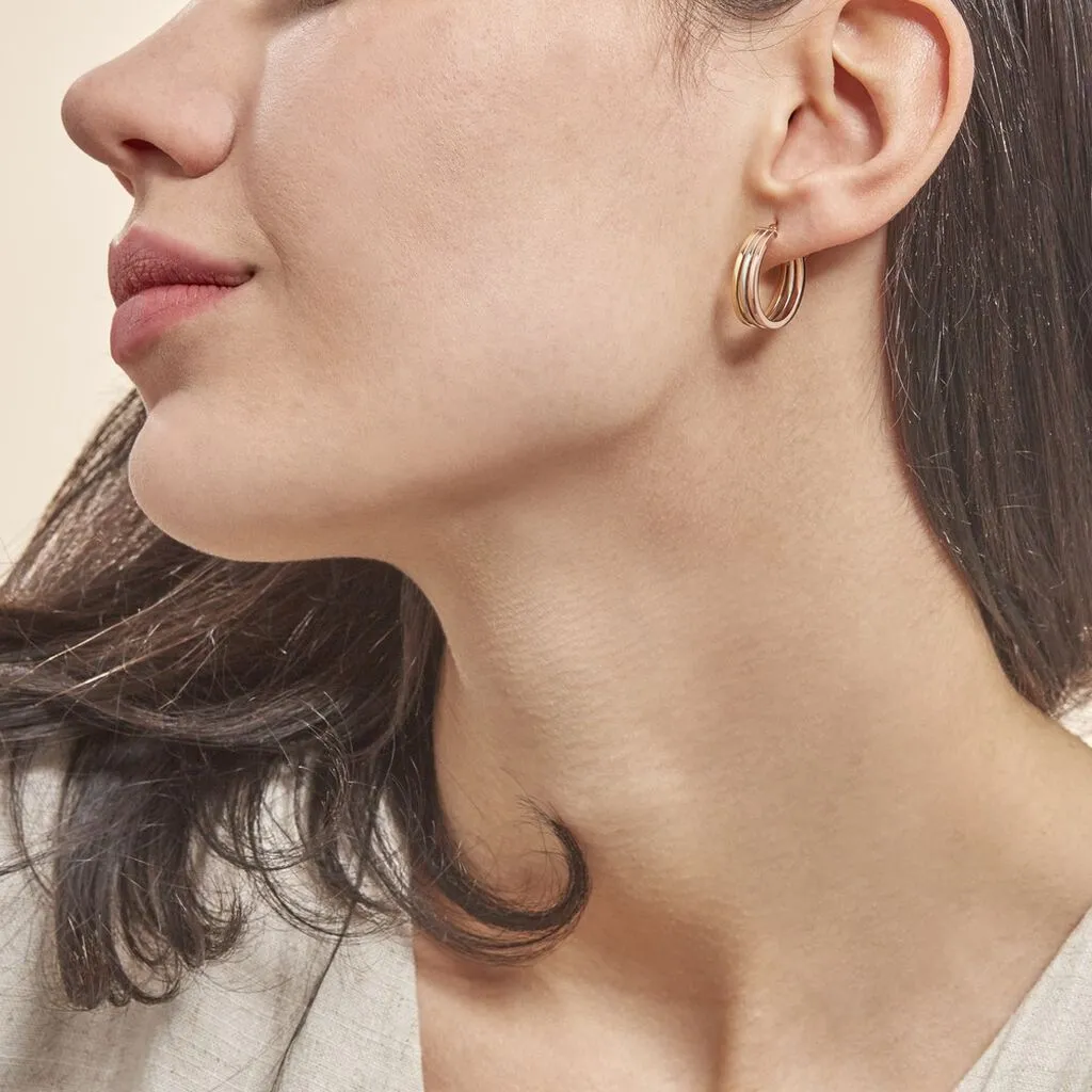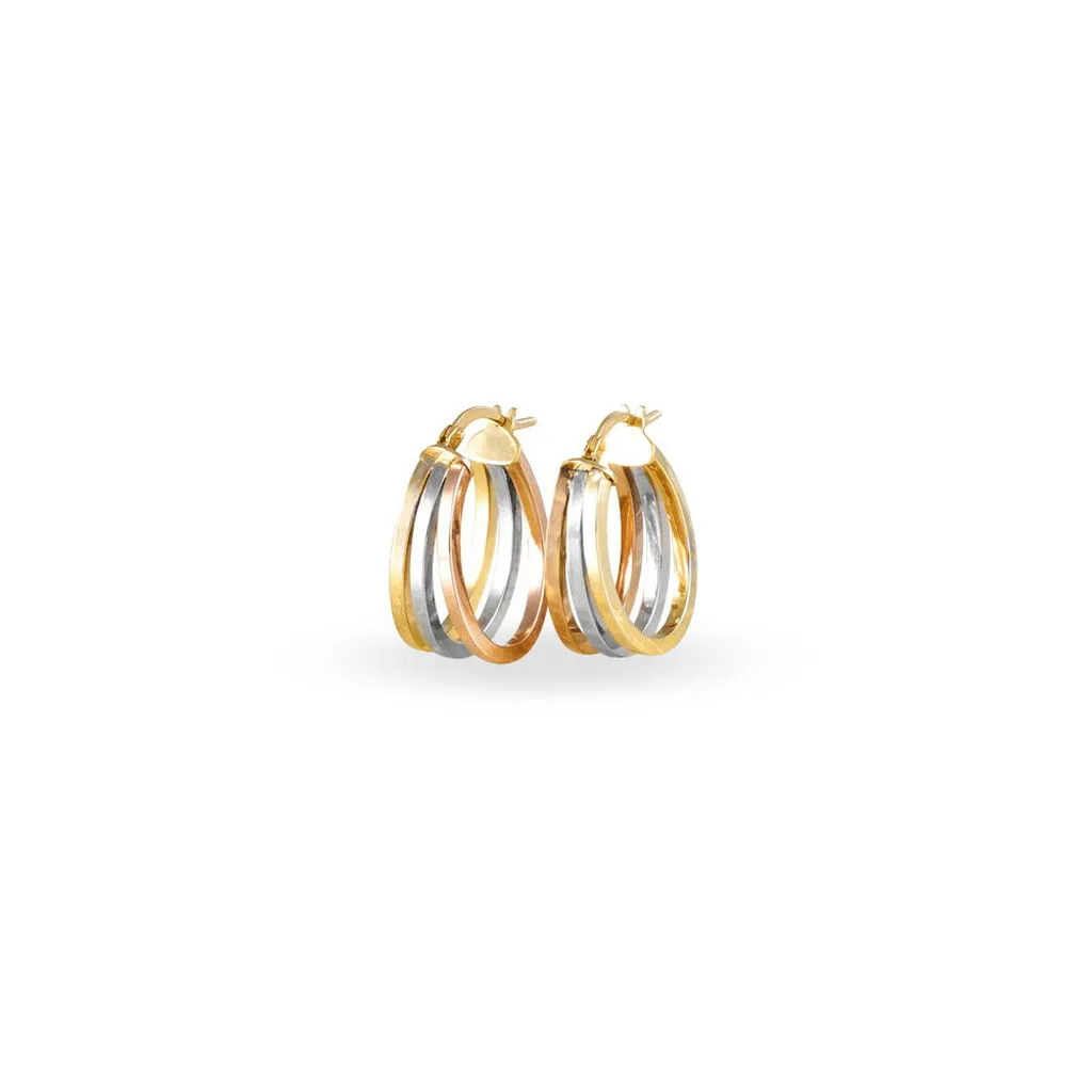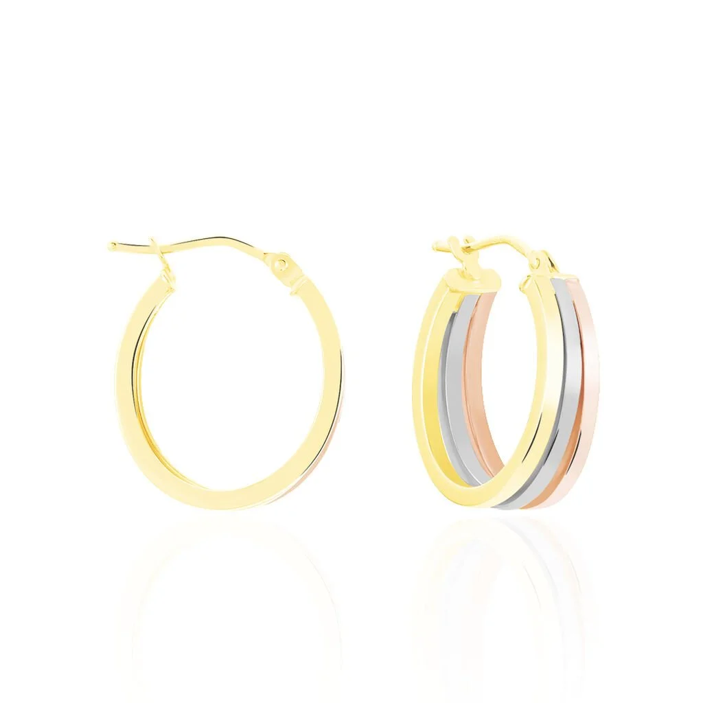 Créoles Or Tricolore 375/1000 Trois Fils Carrés Lisses Largeur 1.4mm Diamètre 19x13mm