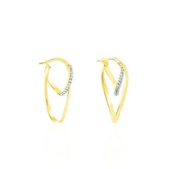 Créoles Or Jaune 375/1000 Deux Fils Carrés Dont Un Fil Avec Strass Largeur 2mm Diamètre 30x9mm