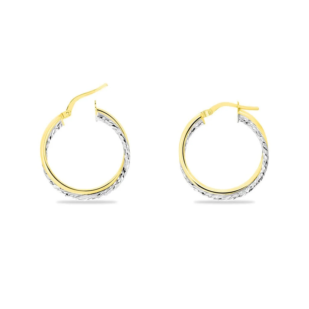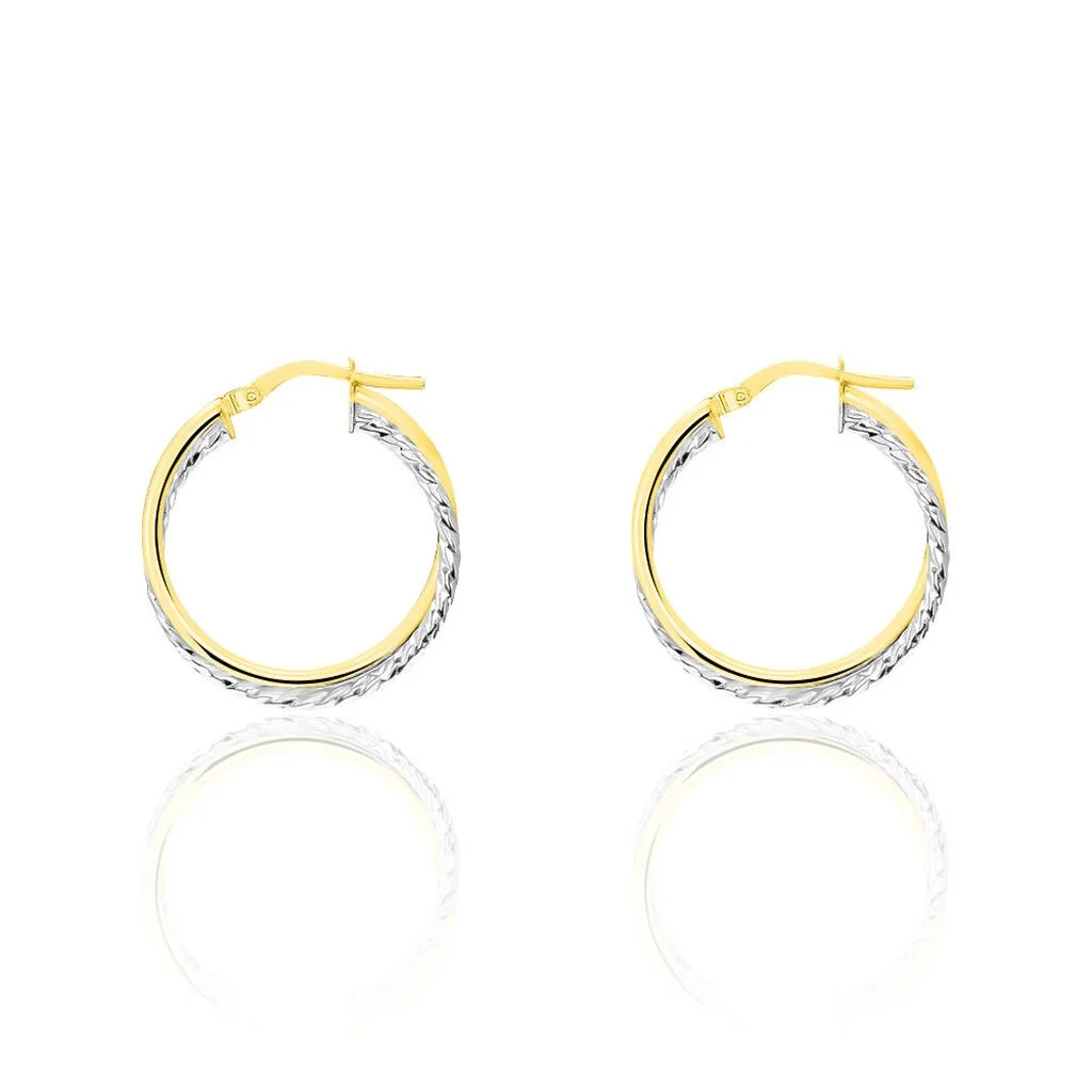 Créoles Or Bicolore 375/1000 Croisées Fils Ronds Lisse Et Torsadé Largeur 1.5mm Diamètre 20mm