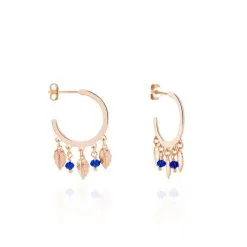 Creoles Argent 925/1000 Rose Motifs Feuilles Style Pampilles + Pierres Bleues