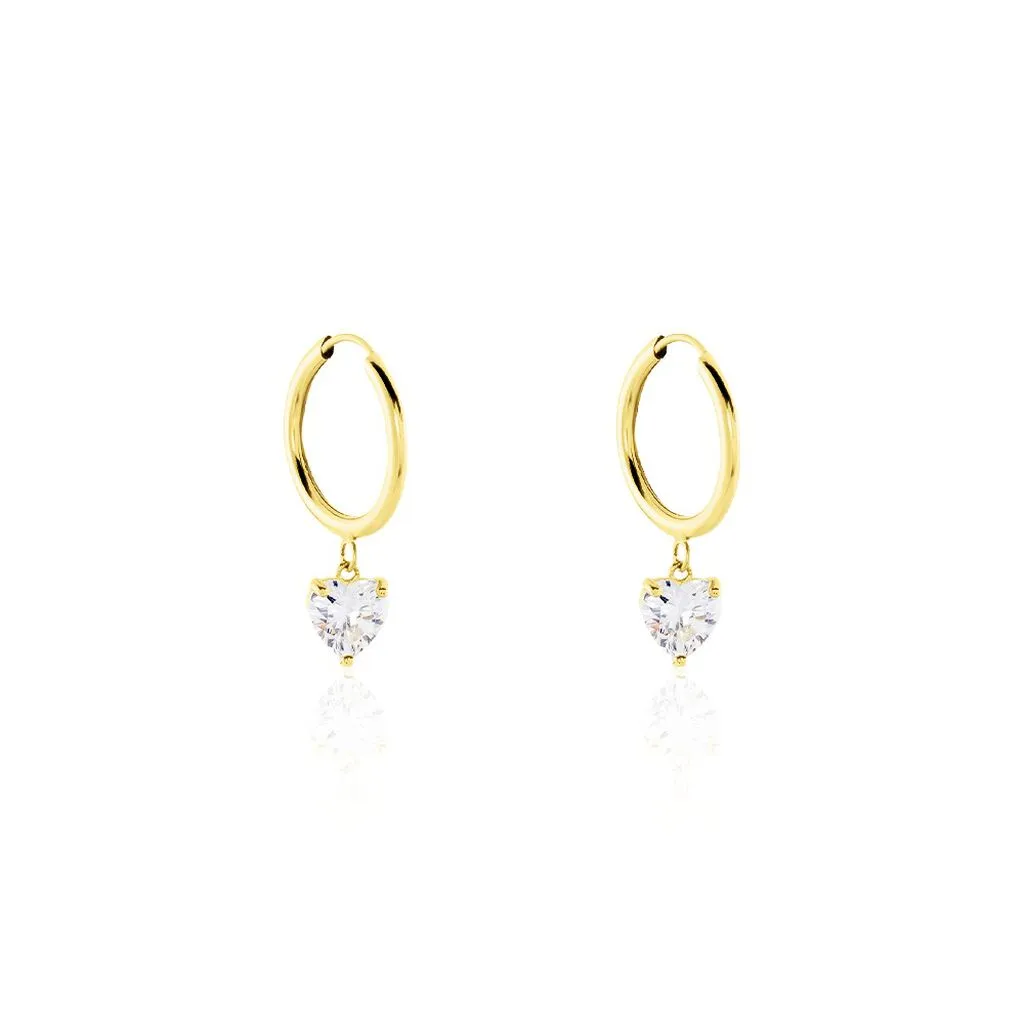 Creoles Or Jaune 375/1000 Pampilles Coeurs Oxydes De Zirconium Gm