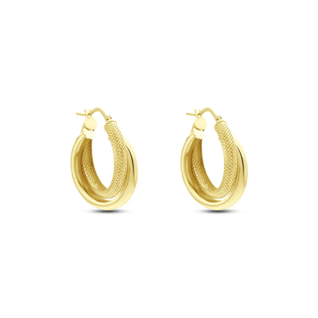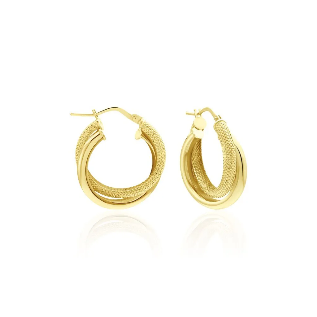 Créoles Or Jaune 375/1000 Croisées Fils Demi Jonc Et Rond Effet Martele Largeur 3mm Diamètre 15mm