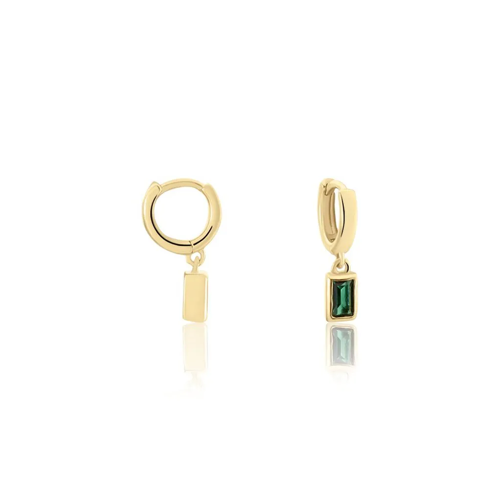 Creoles Plaque Or Jaune Pampilles Barrettes Serties Clos Oxydes De Zirconium Verts Diametre 10mm