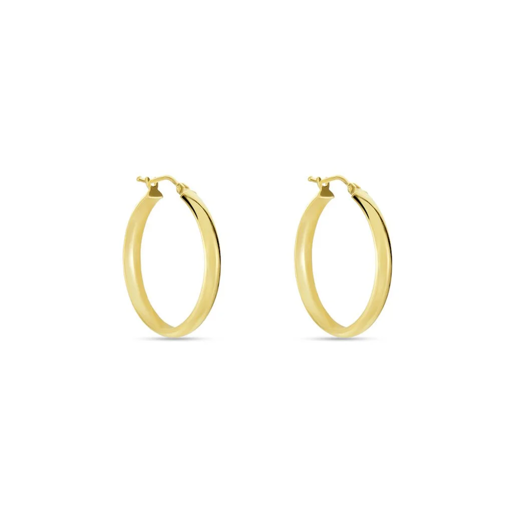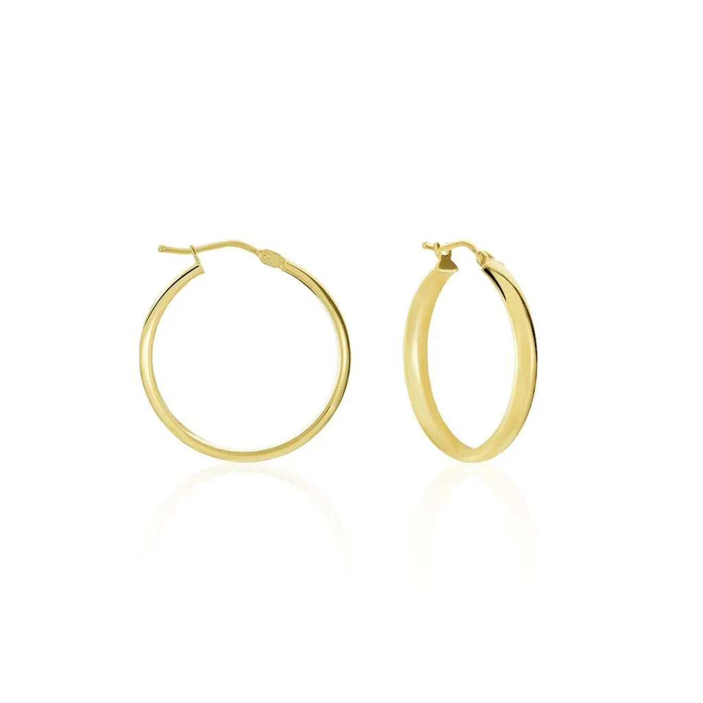 Créoles Or Jaune 375/1000 Lisses Demi Jonc Diamètre 20mm Largeur 3mm