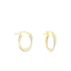 Créoles Or Bicolore 375/1000 Ovales Croisées Fils Ronds Lisses Largeur 1.5mm Diamètre 14x10mm