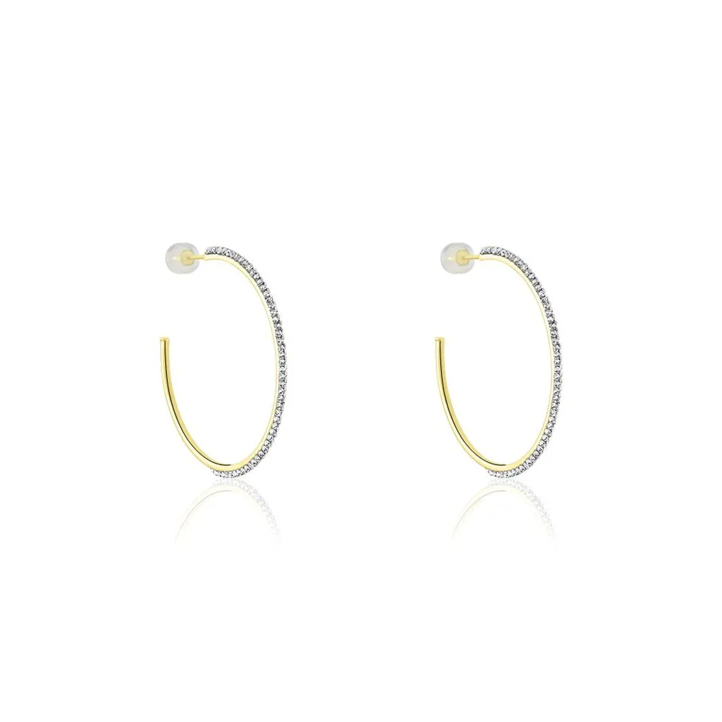 Créoles Or Jaune 375/1000 Fil Carré Strass Largeur 2mm Diamètre 40mm