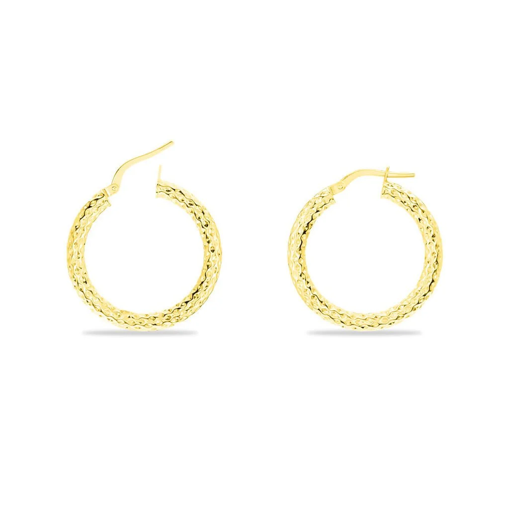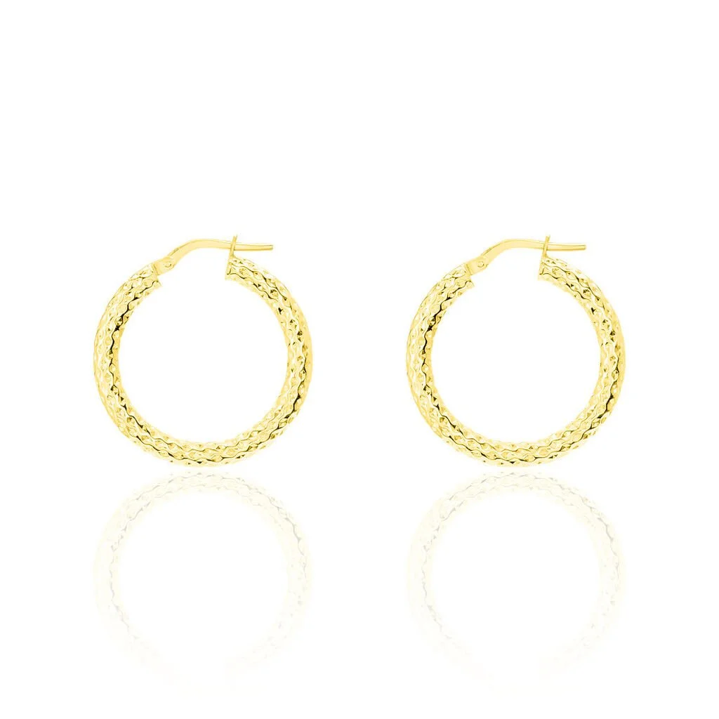 Créoles Or Jaune 375/1000 Fil Rond Martele Largeur 3mm Diamètre 20mm