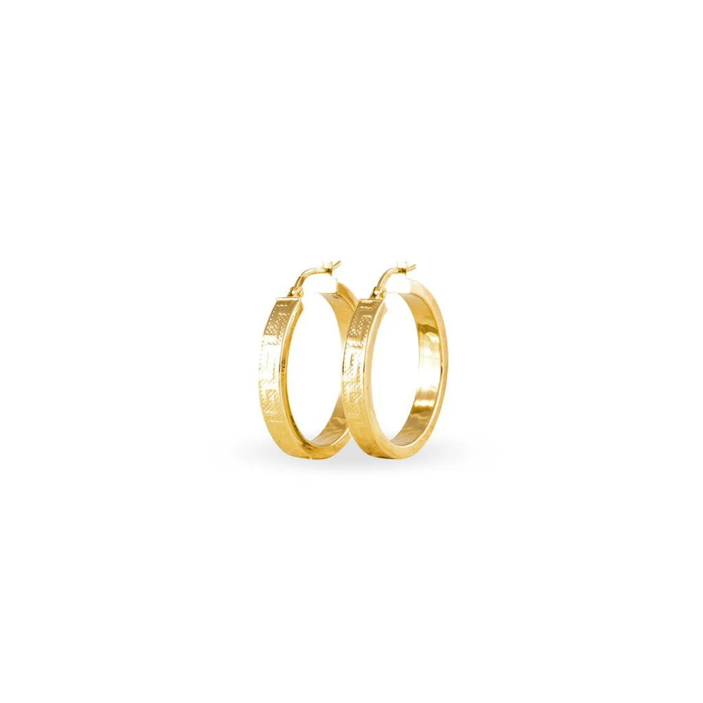 Créoles Or Jaune 375/1000 Fil Carré Grec Largeur 4mm Diamètre 20mm