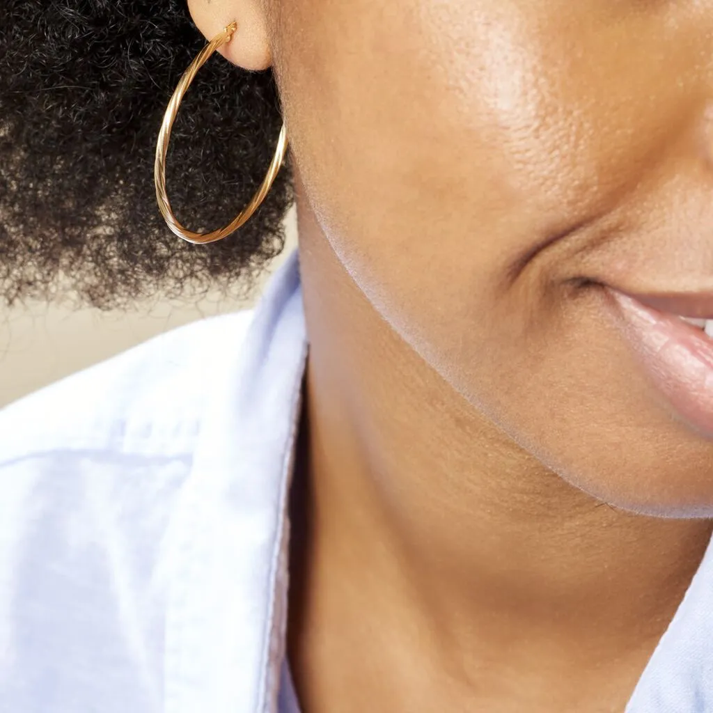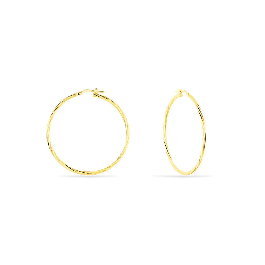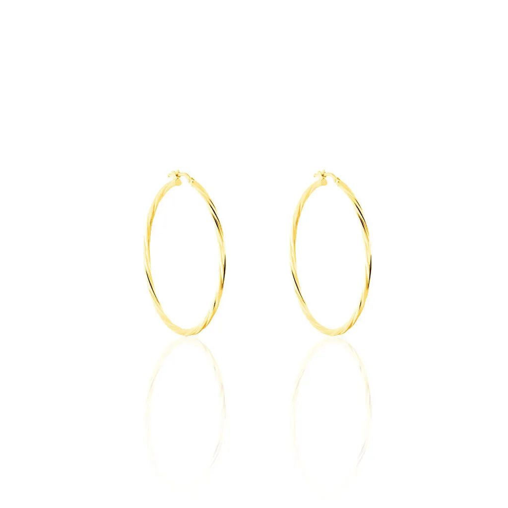 Créoles Or Jaune 375/1000 Fil Rond Torsadé Largeur 2mm Diamètre 50mm