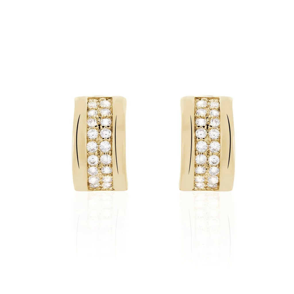 Boucles D’oreilles Plaque Or Jaune Formes Demi-creoles Et Oxydes De Zirconium