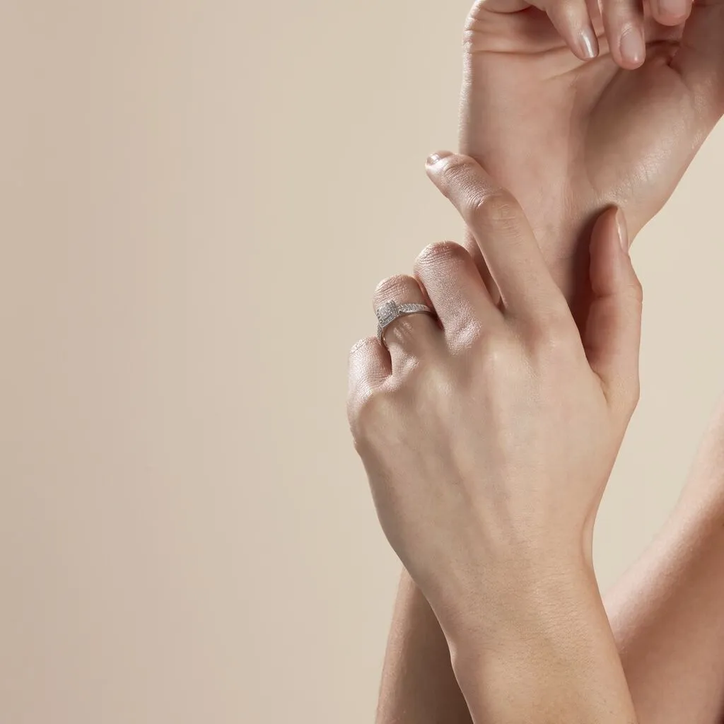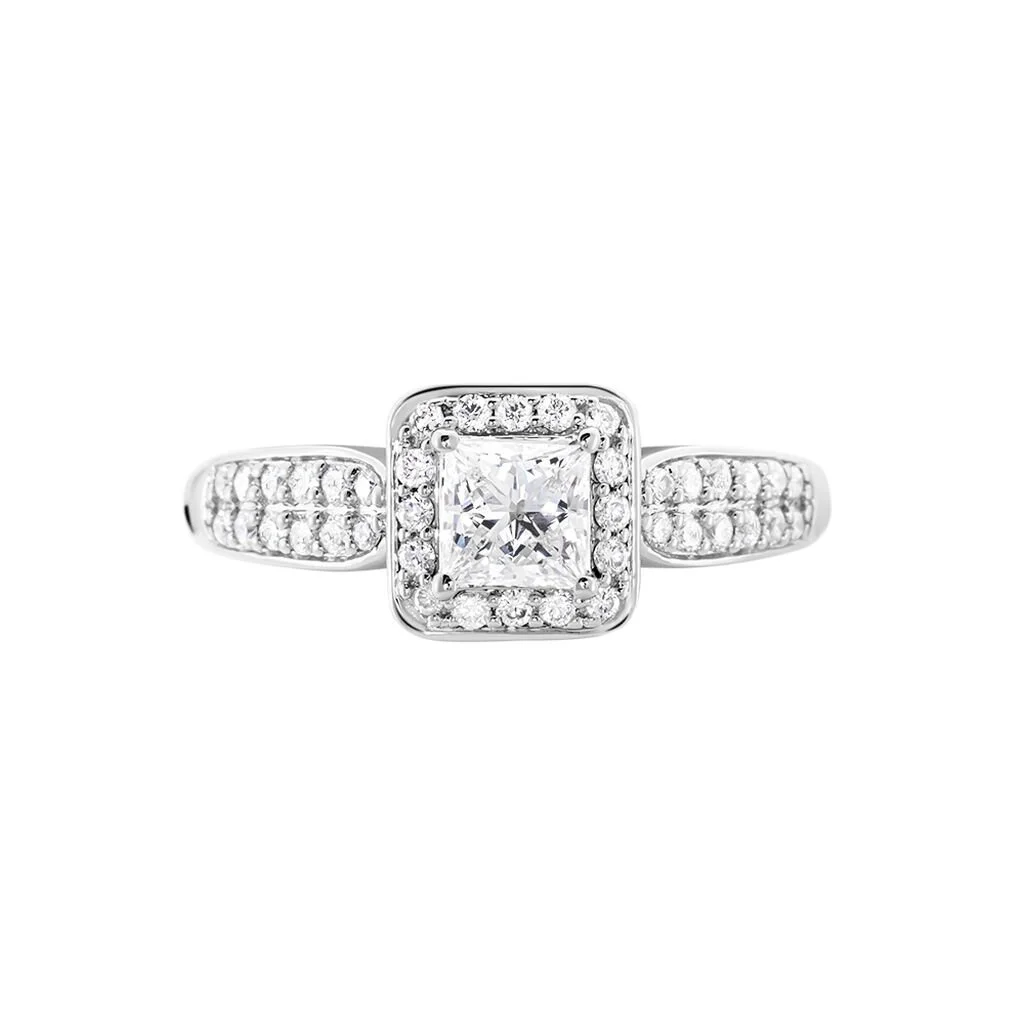 Solitaire Or Blanc 750/1000 Diamant Central Synthetique 0.50ct Taille Princesse Accompagne Diamants Synthetique Sertis Griffes